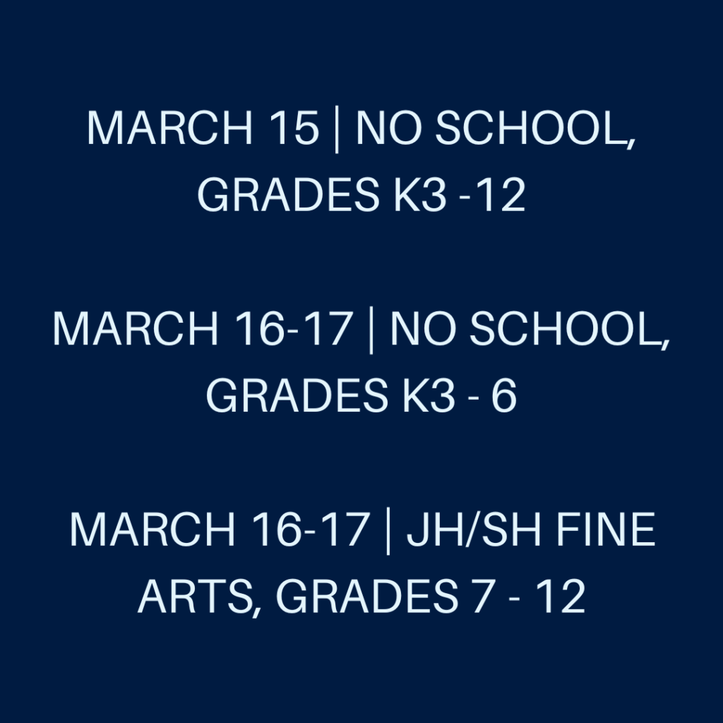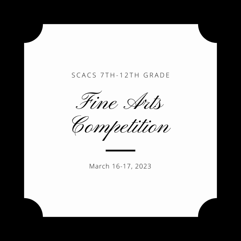Junior High and High School Fine Arts Fee sheets are due back with payment by this Wednesday, March 8. Junior High and High School SCACS Fine Arts Bible Teaching and Preaching competitions are being held here at Grace this Thursday, March 9. Parents and guests are welcome to come and observe these competitions.