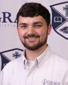 Colton Gideons | Mr. Gideons, “Pastor Colton”, is a first year teacher at GCS. He teaches the 9th-10th grade boys Bible class. When not in class, Pastor Colton serves as our Outreach Pastor at Grace Baptist Church. He and his wife, Aly, met while attending West Coast Baptist College. They were married in March 2019 and moved to North Carolina so Colton could attend Southeastern Baptist Theological Seminary. After seminary, the Gideons came to GBC. They have one daughter, and Aly is due in February with their second.